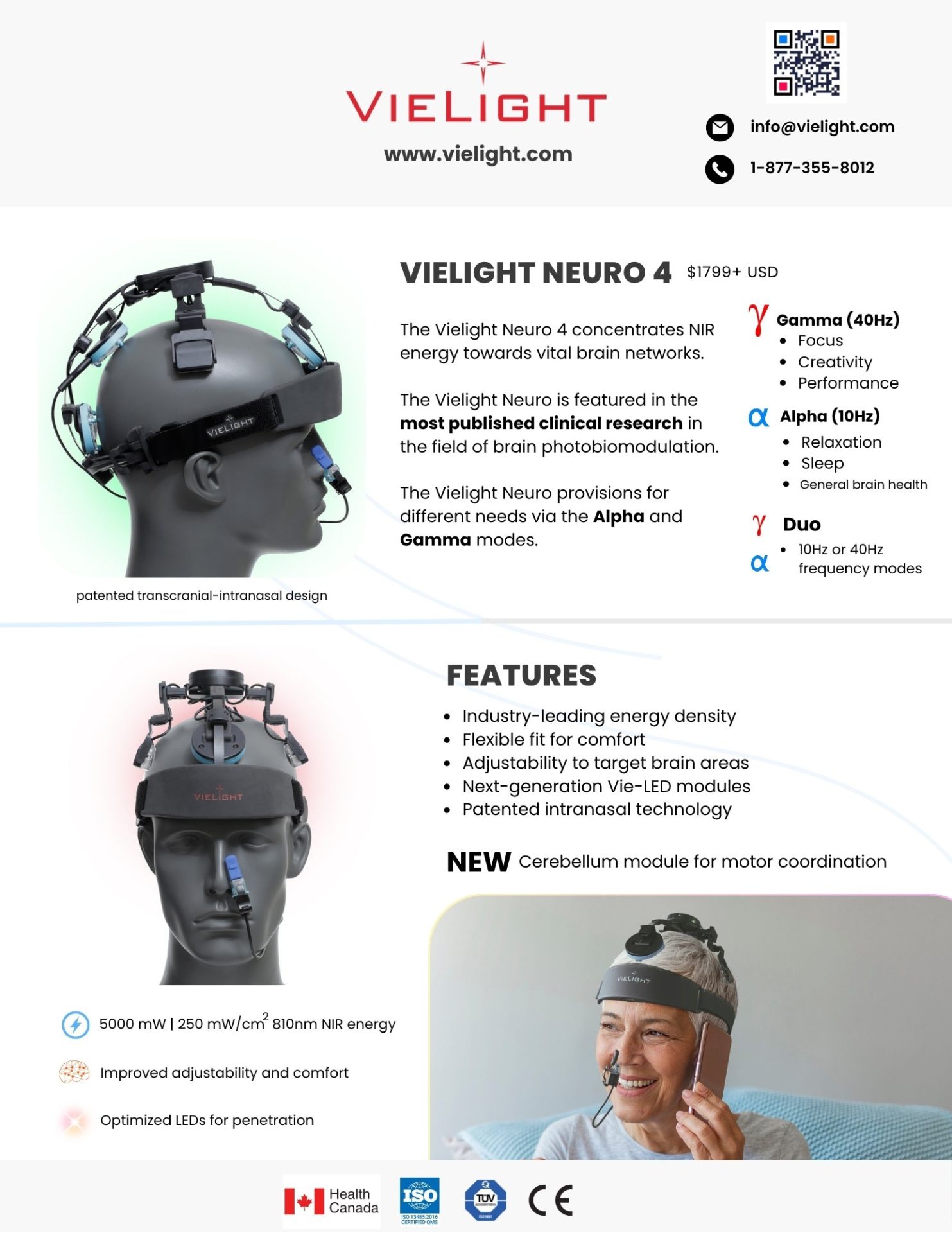 The Vielight Neuro Gamma 4 is the world’s only intranasal-transcranial (itPBM) brain photobiomodulation device.